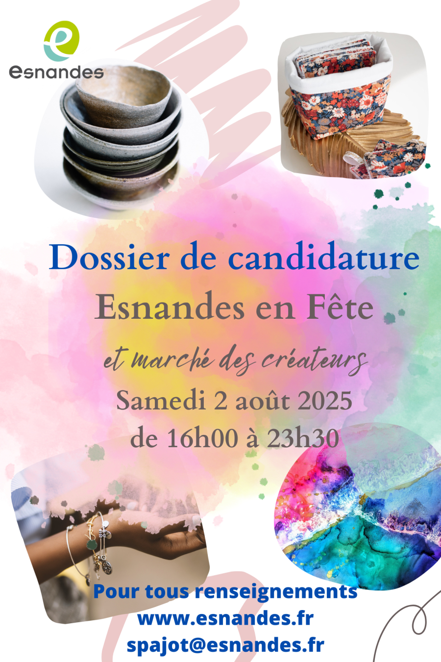 Le samedi 2 août, de 16h00 à 23h30, à l’occasion de la fête d’Esnandes, nous organisons un marché des créateurs !