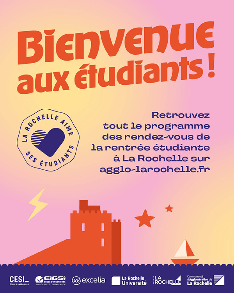 Que vous arriviez à La Rochelle pour la première fois ou que vous poursuiviez vos études ici, l’Agglomération et ses partenaires de l’enseignement supérieur* vous souhaitent la bienvenue ! Pour marquer ce temps fort de l’année, un agenda des rendez-vous de la rentrée 2025 a été spécialement conçu afin de vous guider dans vos premiers pas et de vous permettre de profiter pleinement de la vie étudiante, tout au long des mois de septembre et octobre.